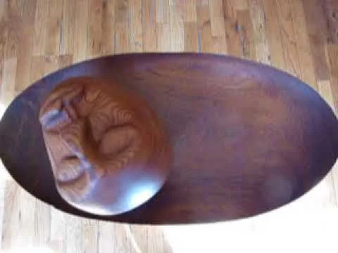 The bowl is carved from an elegant piece of black walnut which sits on a slab of steatite on top of a sensuous piece of contorted applewood based on a rough oak.